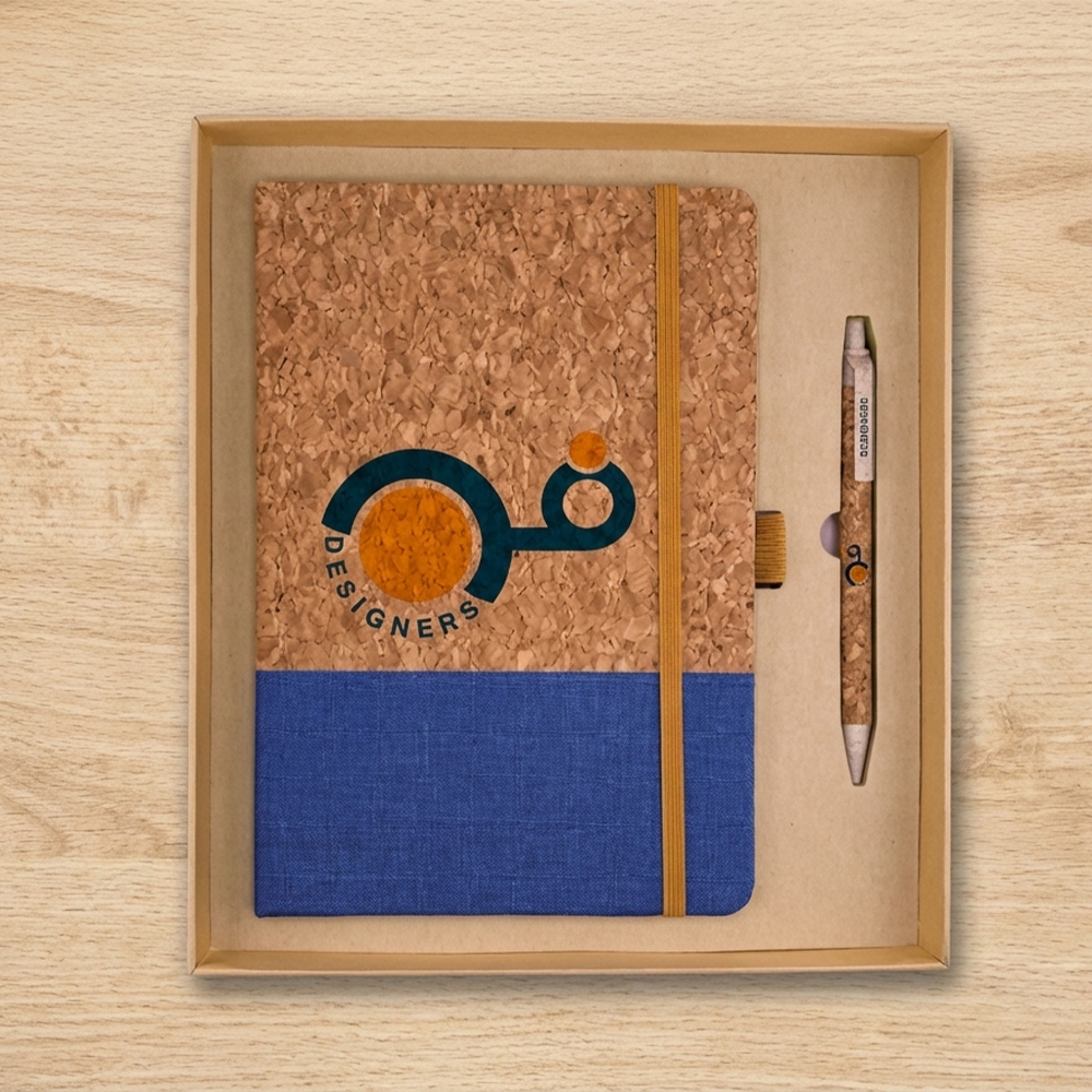 طقم هدية دفتر ملاحظات وقلم من قماش الفلين الصديق للبيئة بحجم A5، GK05
